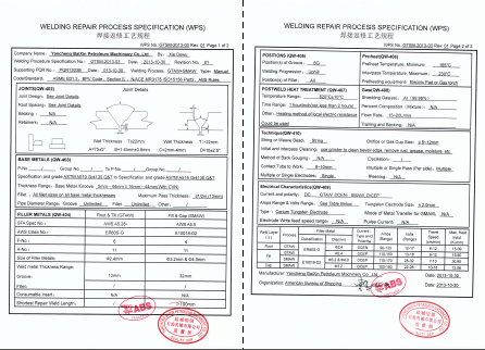 4130對接焊、4130焊縫熱影響區返修、4130焊縫返修,以上焊接工藝均通過ABS認證